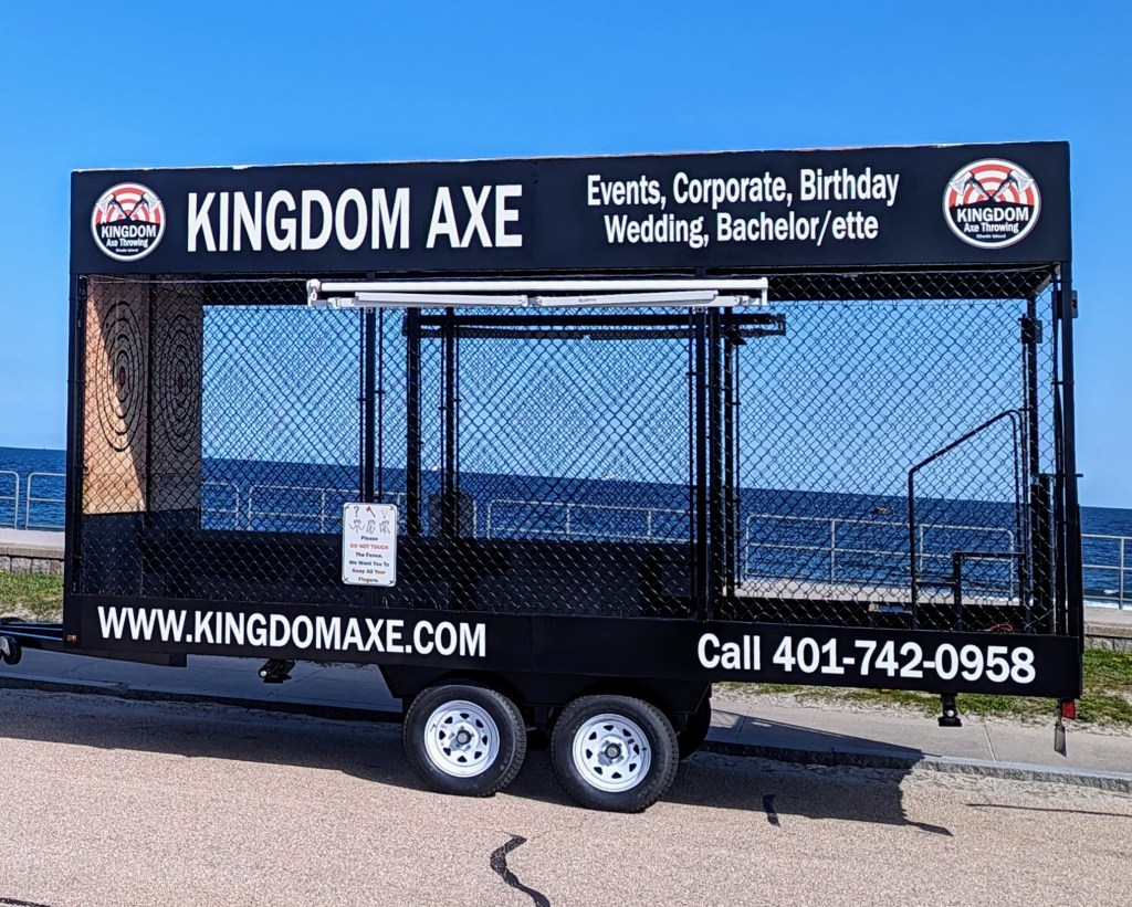 Give us a call, email us, or click on the “BOOK NOW” button and schedule the Kingdom Axe custom axe throwing trailer for your next event!